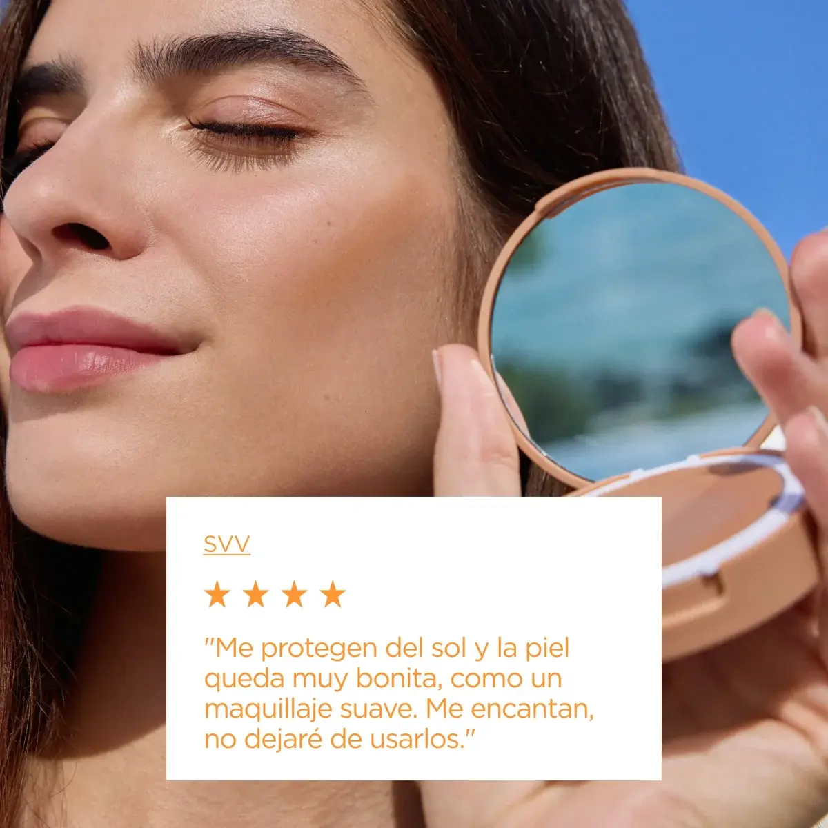 Luce un tono de piel natural y unificado con Compact Medium SPF 50, el maquillaje compacto de uso diario con filtros 100% minerales y color en tono medio que proporciona una alta protección. Cubre imperfecciones y aporta una cobertura mate de larga duración.
